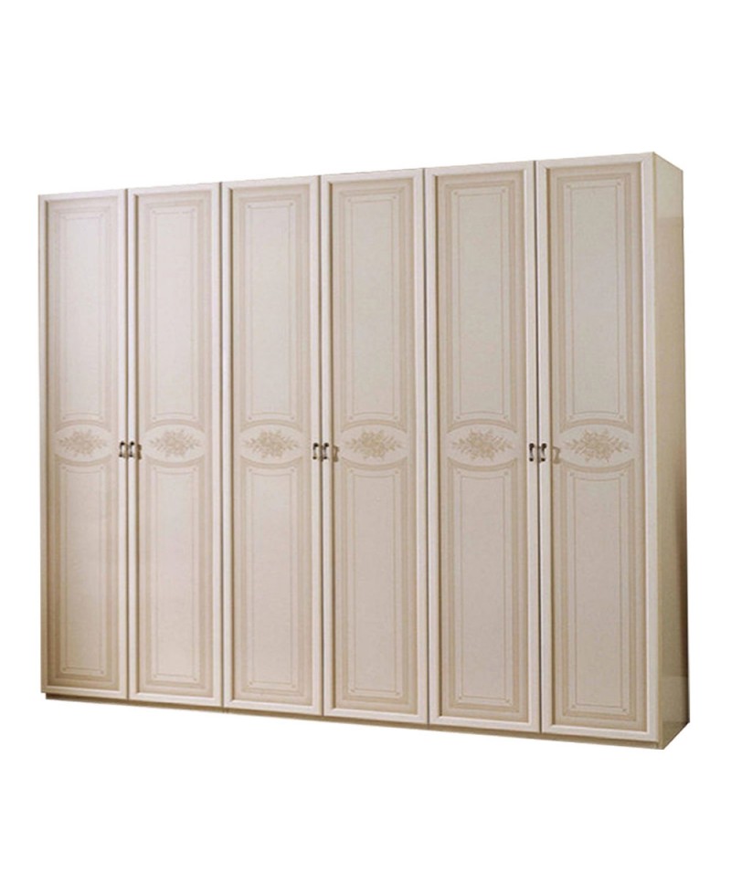 Armadio con finitura Patinato colore Beige con frontali serigrafati a 6 ante a battente.