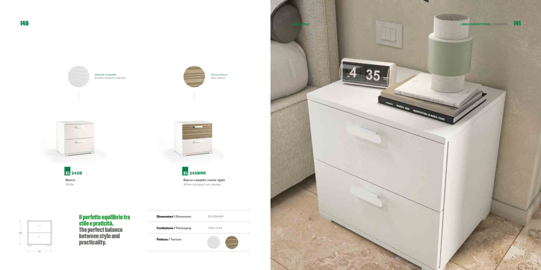 3 – Articolo EL 242, dimensioni L.50 * P.39 * H.49 cm (2 Box in kit) nelle seguenti varianti di codice e colore: