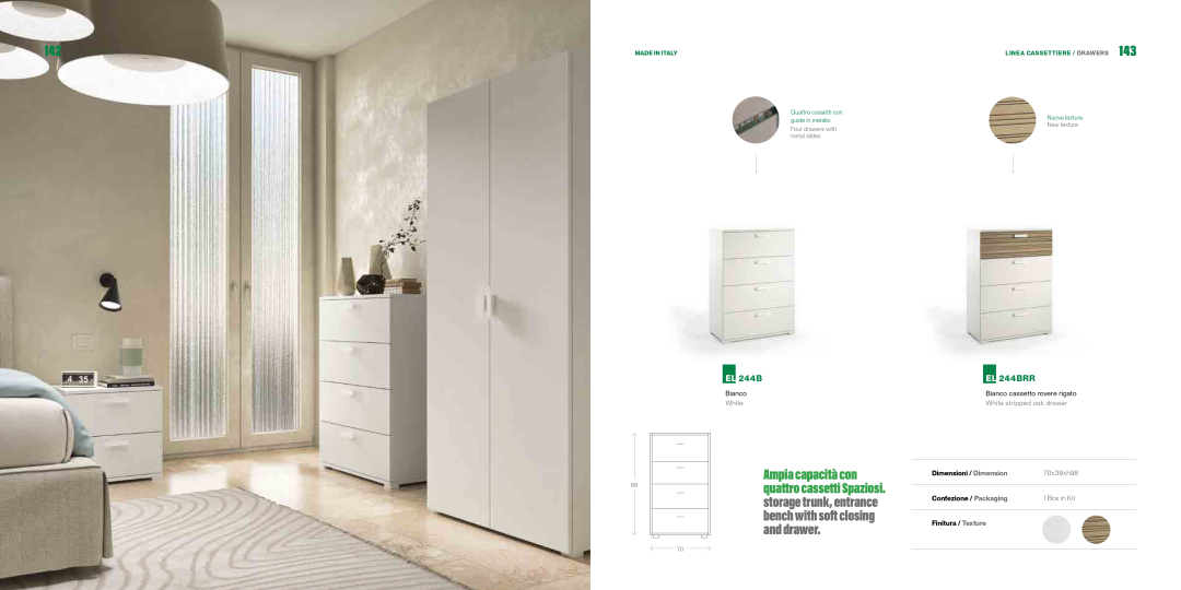 4 – Articolo EL 244, dimensioni L.70 * P.39 * H.98 cm (1 Box in kit) nelle seguenti varianti di codice e colore: