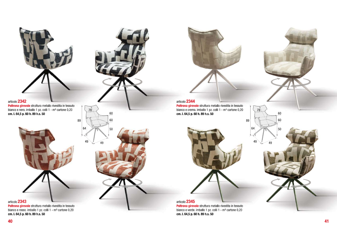 Poltrone girevoli disponibili nelle seguenti varianti: