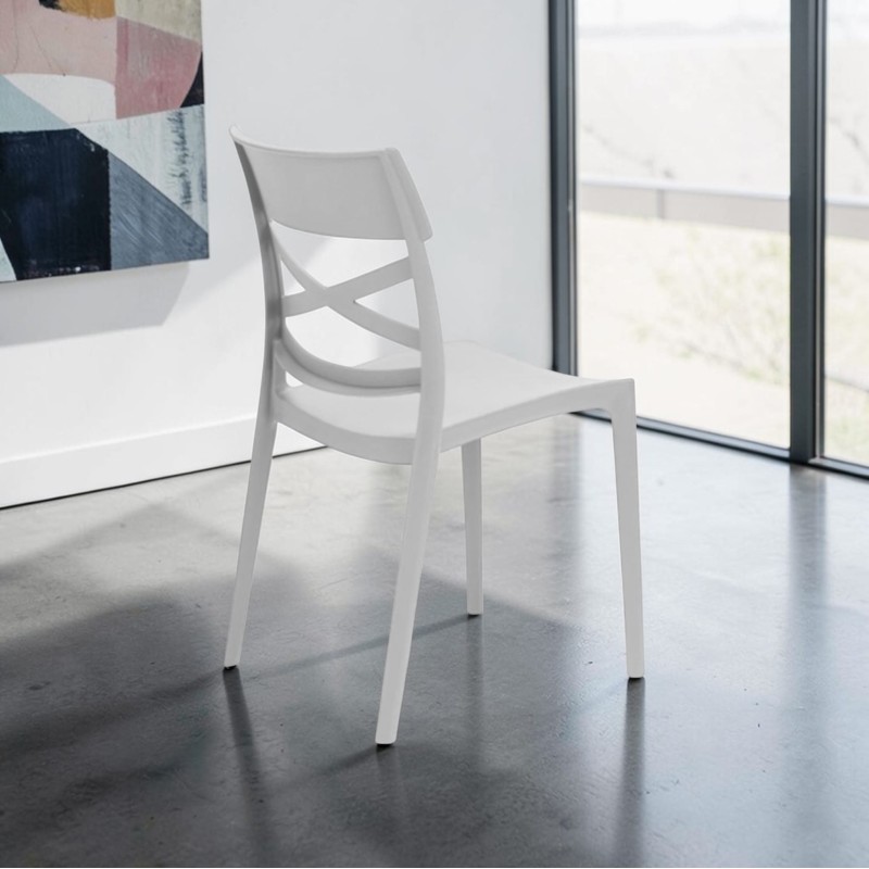 Sedia modello X CROSS in polipropilene impilabile.