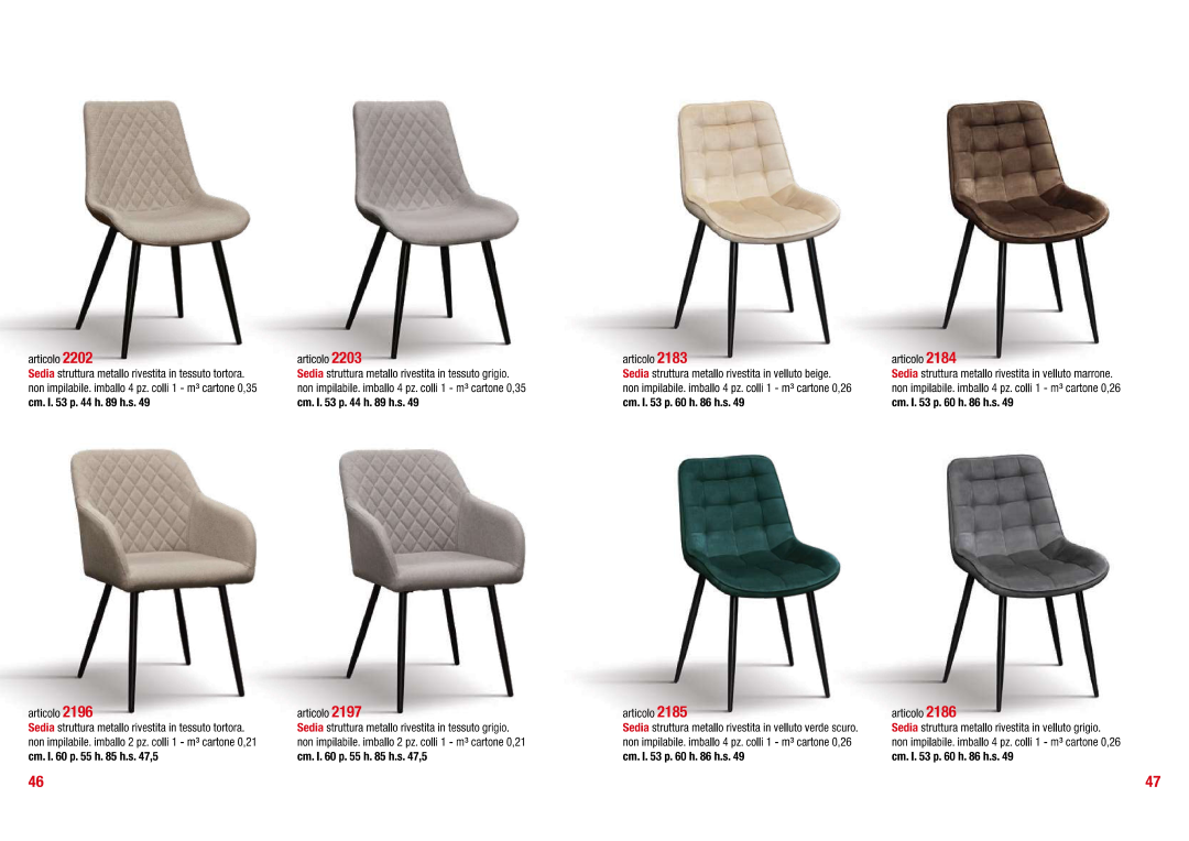 • Articolo 2202: struttura metallo rivestita in tessuto tortora. L.53 * P.44 * H.89 * H seduta 49 cm (Min. 4 pezzi);