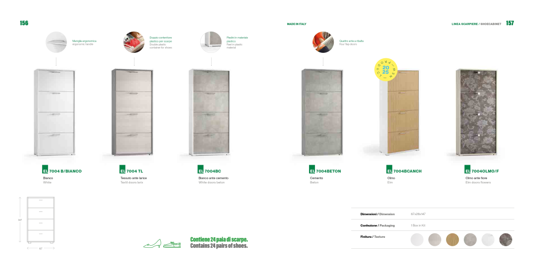 2 – Articolo EL 7004, dimensioni L.67 * P.28 * H.147 cm (1 Box in kit):