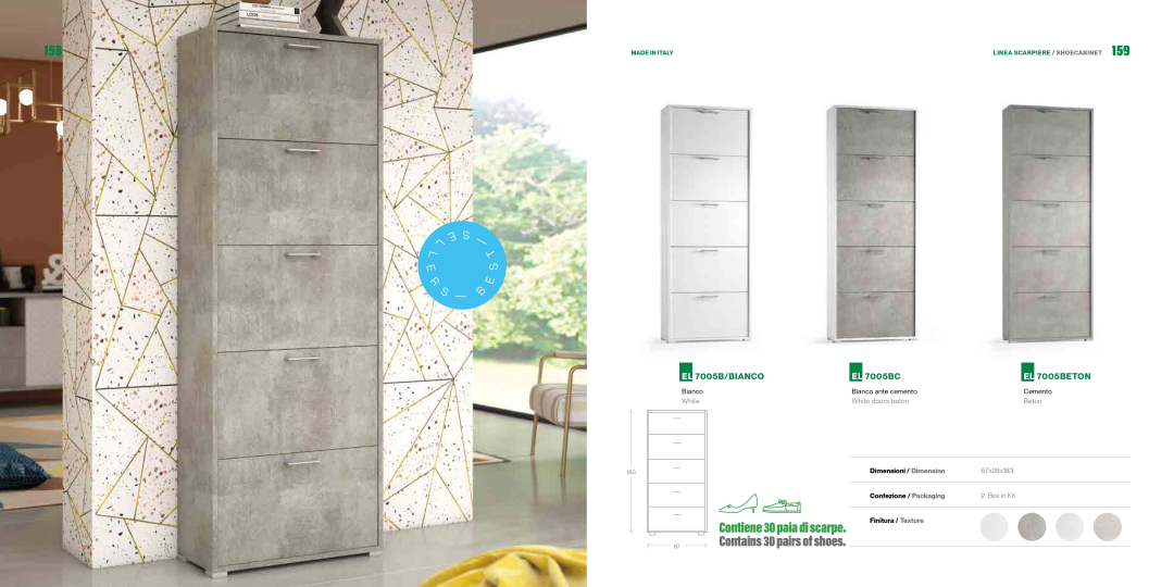 3 – Articolo EL 7005, dimensioni L.67 * P.28 * H.183 cm (2 Box in kit):