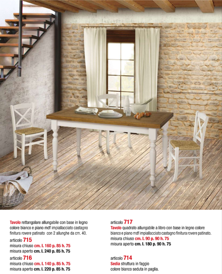• Articolo 716: misure chiuso L.140 * P.85 * H.75 – misure aperto L.220 * P.85 * H.75;