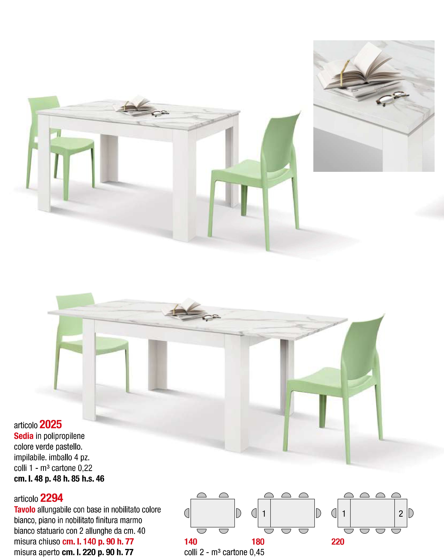Tavolo allungabile con base in nobilitato colore bianco, piano in nobilitato finitura marmo bianco statuario con 2 allunghe da cm. 40: